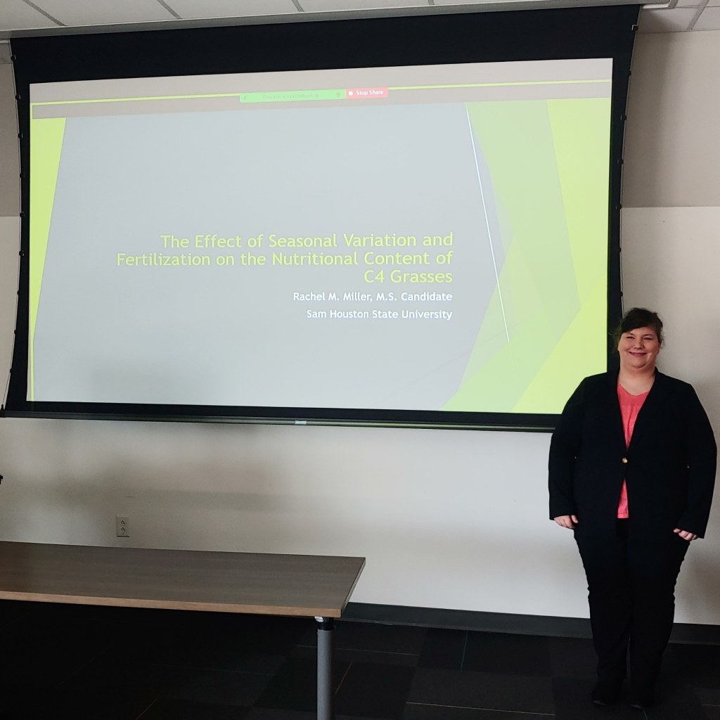 Rachel investigated the effect of growing season, fertilization, and time of day on nutrient content of warm season grasses.